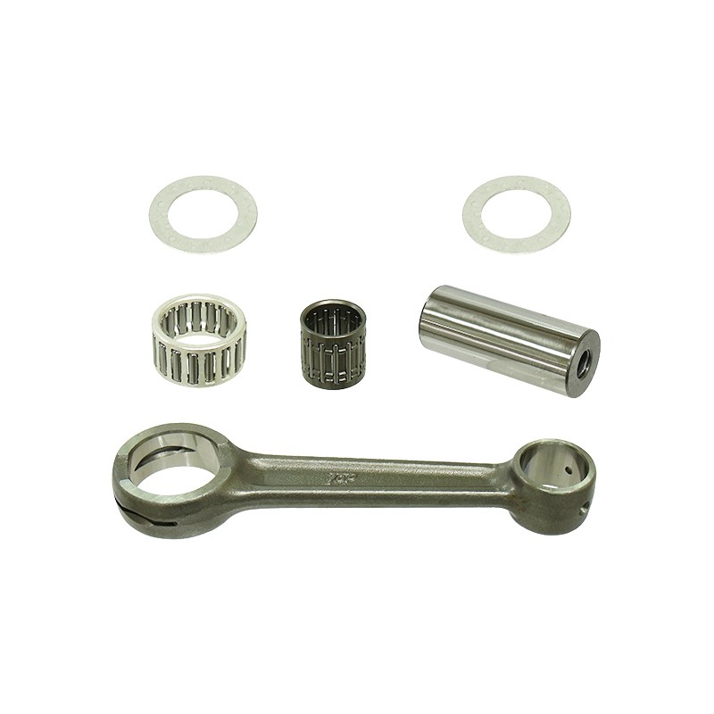 Ce kit comprend une bielle, un axe de piston, des roulements supérieurs et inférieurs, ainsi que des rondelles (si nécessaire). La bielle est forgée à partir d'acier chromoly de première qualité avec un double rodage sur les trous des roulements supérieurs et inférieurs pour un fonctionnement en douceur et une durée de vie accrue des roulements. Les rondelles, revêtues d'argent et zinguées, sont dotées de manetons de vilebrequin en acier chromoly SCM415. Les roulements à aiguilles, revêtus d'argent et fabriqués en acier chromoly SCM415, offrent une résistance accrue à la chaleur et une lubrification supplémentaire.
